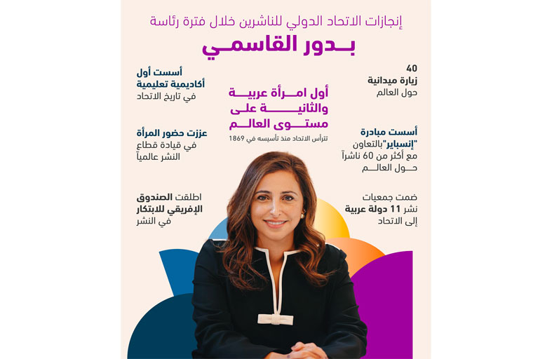 قدّمت الشيخة بدور القاسمي، خلال رئاستها للاتحاد الدولي للناشرين، نموذجاً استثنائياً في قيادة قطاع النشر العالمي ورسم ملامح مستقبله في فترة صعبة شكلت تحدياً ليس لصناعة الكتاب وحسب، وإنما لكل حكومات العالم، وتجسّدت في “جائحة كورونا”، فما أظهرته جهودها من نتائج نقلت الاتحاد من مرحلة التركيز على قطاعات النشر في البلدان المركزية، إلى اتحاد دوليّ بالمعنى الحقيقي للكلمة، حيث نجحت في وضع بلدان مغيبة عن الحراك العالمي في مركز الاهتمام، وقدّمت أسواقها بوصفها الفرص المقبلة لصناعة الكتاب في العالم.