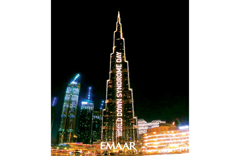 برج خليفة يتزين بألوان اليوم العالمي لمتلازمة داون