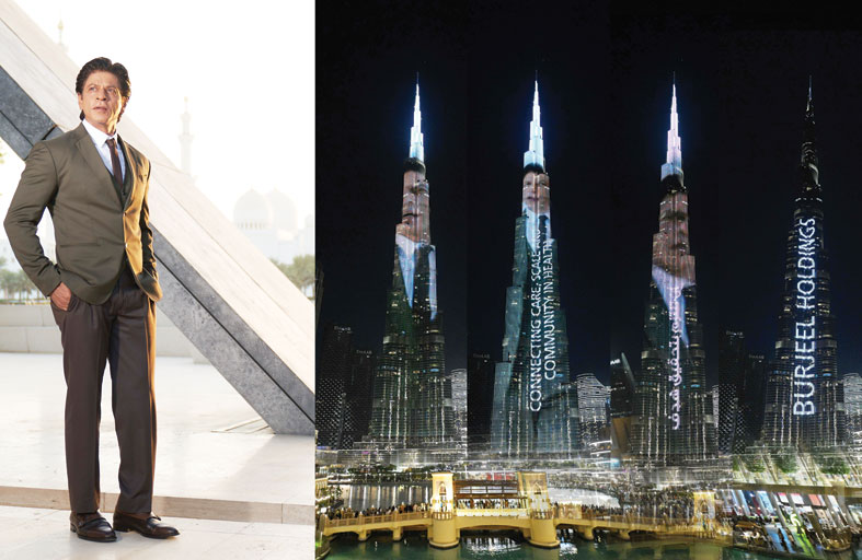أطلق النجم الهندي العالمي شاروخان الملقب بـملك بوليوود، الحملة الترويجية للعلامة التجارية لمجموعة برجيل القابضة التي تتخذ من دولة الإمارات العربية المتحدة مقرًا لها، وتعد احدى كبرى مقدمي الرعاية الصحية في منطقة الشرق الأوسط. وأضاء برج خليفة، الذي يعدّ أطول بناء في العالم، في مساء الأربعاء، بصورة النجم الهندي شاروخان، الذي يحل عيد ميلاده الشهر القادم، وإيذانا بانطلاق الحملة الترويجية للعلامة التجارية، وذلك بحضور شاروخان ومسؤولي برجيل القابضة. وفي تمام الساعة 8:20 مساءً، أنارت أطول شاشة في العالم أفق مدينة دبي خلال عرضها مقطع فيديو للحملة الترويجية، يروي فيه شاروخان القصة الملهمة لمجموعة الرعاية الصحية.
