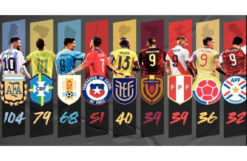 ويحتل الأسطورة ليونيل ميسي قائمة هدافي “التانغو” برصيد 104 أهداف، بينما يتصدر لويس سواريز قائمة هدافي منتخب أوروغواي برصيد 68 هدفاً، ويحتل أليكسيس سانشيز المركز الأول في قائمي هدافي منتخب تشيلي برصيد 51 هدفاً.