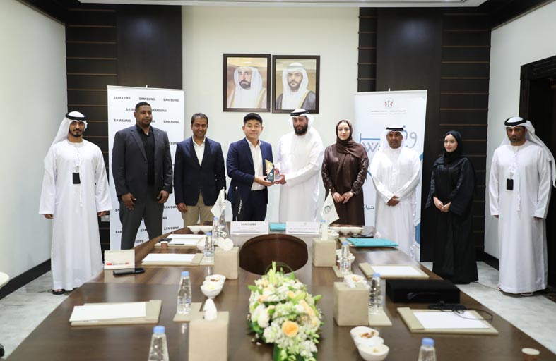 وقّع الاتفاقية سعادة المهندس عمر خلفان بن حريمل الشامسي، عضو المجلس التنفيذي لإمارة الشارقة رئيس دائرة الموارد البشرية والسيد دوهي لي رئيس شركة سامسونج الخليج للإلكترونيات . وذلك بالمقر الرئيسي للدائرة في منطقة اللية بالخان.
