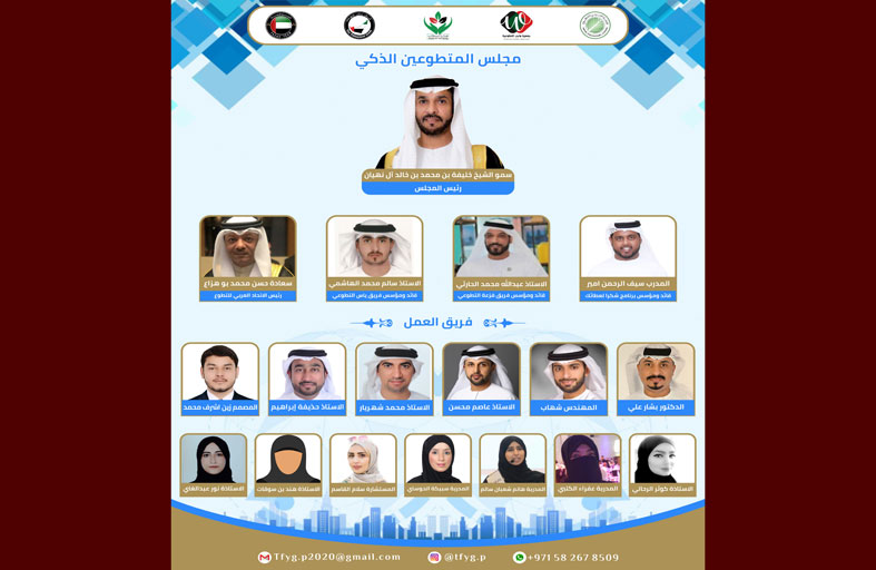 تحت رعاية الشيخ خليفة بن محمد بن خالد آل نهيان ينظم برنامج شكراً لعطائك وجمعية واجب التطوعية وبالتعاون مع الاتحاد العربي للتطوع وفريق فزعة التطوعي وفريق ياس التطوعي، بتنظيم مجلس المتطوعين الذكي والذي يسعى إلى تسليط الضوء على التجارب التطوعية الملهمة عبر استضافة أبطال التطوع في مجالاته المختلفة عن طريق تطبيق Zoom للاتصال المرئي وذلك تماشياً مع الإجراءات الاحترازية التي اتخذتها الدولة في مكافحة فايروس كورونا (كوفيد-19).