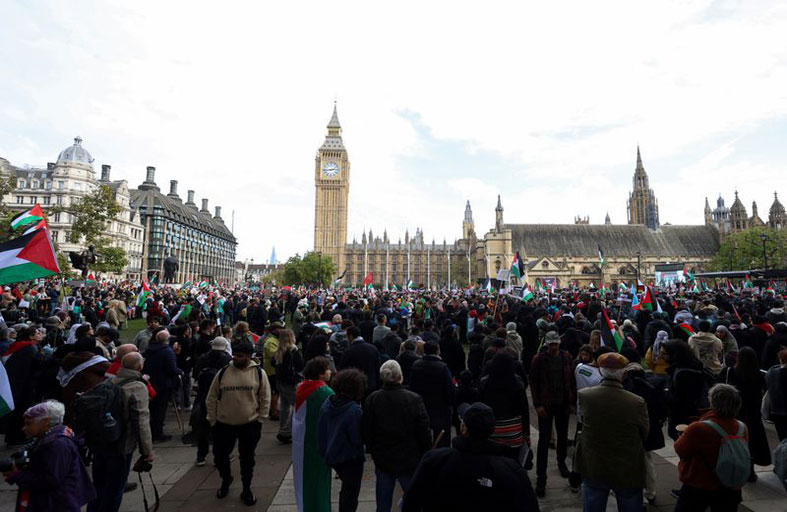 وشهدت لندن وغيرها من المدن الكبرى في بريطانيا مظاهرات حاشدة مؤيدة للفلسطينيين، في حين نظمت جماعات يهودية وقفات ليلية تضامنا مع من احتجزتهم حماس.