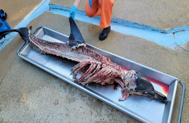 وعلق على الصورة بالقول: “أزيل لحمه بالكامل بأداة حادة، ولم يتبق سوى الرأس والزعنفة الظهرية والزعانف، كما أزيلت جميع أعضائه باستثناء القلب والرئتين”. وفي منشوره، شرح المركز تفاصيل الحادثة قائلاً: “أفاد شهود عيان ليلة الثلاثاء أنهم رأوا دلفيناً من نفس النوع “يكافح في الأمواج على بعد بناية واحدة من المكان الذي تم اكتشاف البقايا فيه لاحقاً”. وأردف: “مع ذلك، أكدوا أن الدلفين كان قادراً على السباحة فوق الشريط الرملي والعودة إلى البحر”. وقال المركز إنه من غير المعروف ما إذا كانت البقايا تعود لنفس الحيوان الذي عثر عليه في اليوم التالي.