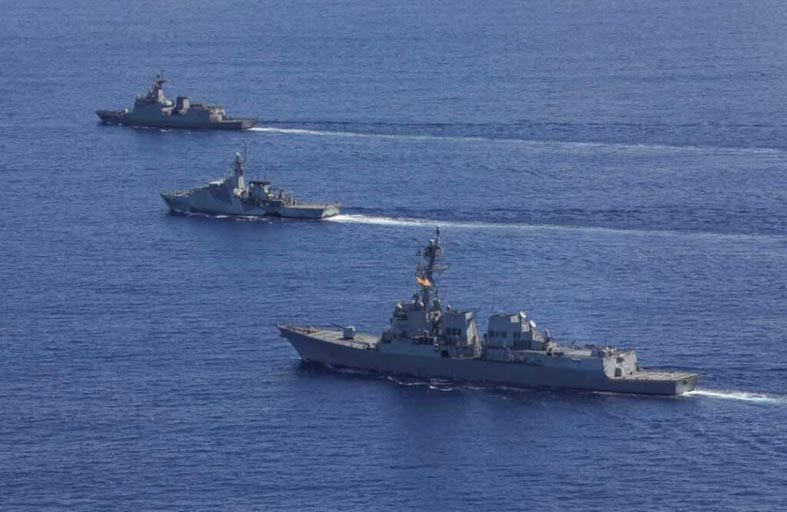 لكنه أضاف «إذ حركت الولايات المتحدة عملاءها في الكواليس، إذا دفعت دولا إلى الواجهة أو إذا انتهى الأمر بها هي نفسها في الخط الأمامي، عندها فإن جيش التحرير الشعبي الصيني... لن يتهاون». وتوعد بأن الجيش «سيسحق بحزم أي توغل أجنبي معاد (ينتهك) حقوق ومصالح الصين الجغرافية والسيادية والبحرية» مؤكّدا أنها ستقوم بذلك بشكل حازم وفعّال.
