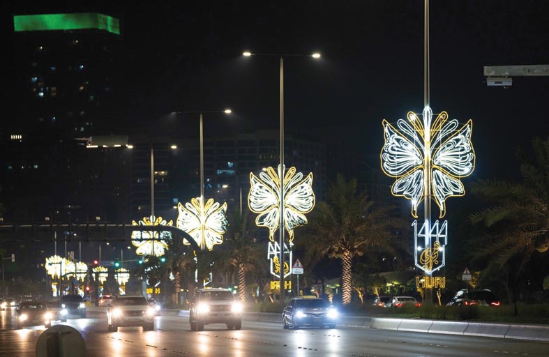 مواكبة لحلول العام الهجري الجديد 1444، عملت بلدية مدينة أبوظبي، على تزيين شارع كورنيش أبوظبي وعدداً من الجسور بمئات التشكيلات واللوحات الضوئية، لتشارك أفراد المجتمع الاحتفاء باستقبال هذه المناسبة الجليلة وما تمثل من قيم وروحانيات إسلامية نبيلة، وكذلك إدخال السعادة والسرور على قلوب أفراد المجتمع.