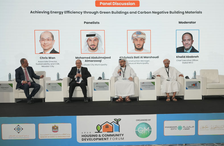 ضمن جلسة حوارية بعنوان تحقيق الاستدامة من خلال المباني الخضراء ومواد البناء سالبة الكربون