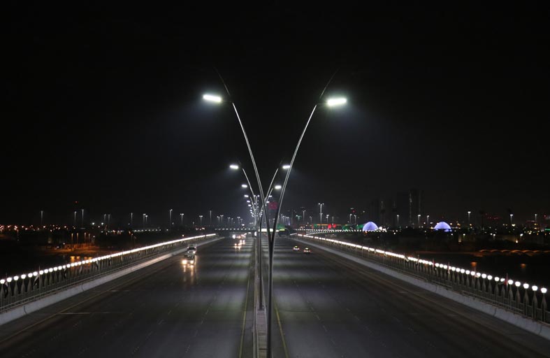 بلدية مدينة أبوظبي تطور شبكة الإنارة على جسر مصفح