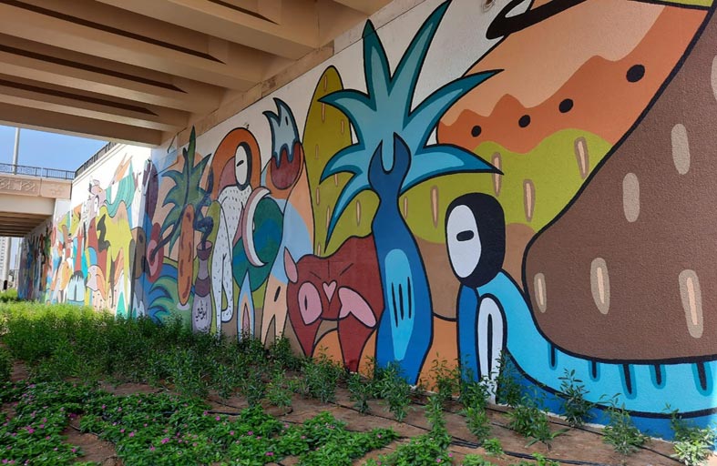 بلدية مدينة أبوظبي تنجز تجميل جدران جسر دلما برسومات إبداعية تحاكي التراث والبيئة الإماراتية