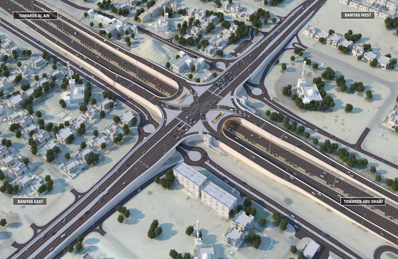ويتضمن المشروع إنشاء التقاطع العلوي الرابط بين شرق وغرب بني ياس والطرق المرتبطة به، وتحويل دوار شرق بني ياس الحالي إلى تقاطع إشارة ضوئية، وكذلك إنشاء سلالم للمشاة، وهدم أنفاق المشاة الحالية، ونقل وحماية خطوط المياه والاتصالات وخطوط الري وخط الصرف الصحي، بالإضافة إلى أعمال إنارة الشوارع وشبكة توزيع الكهرباء.