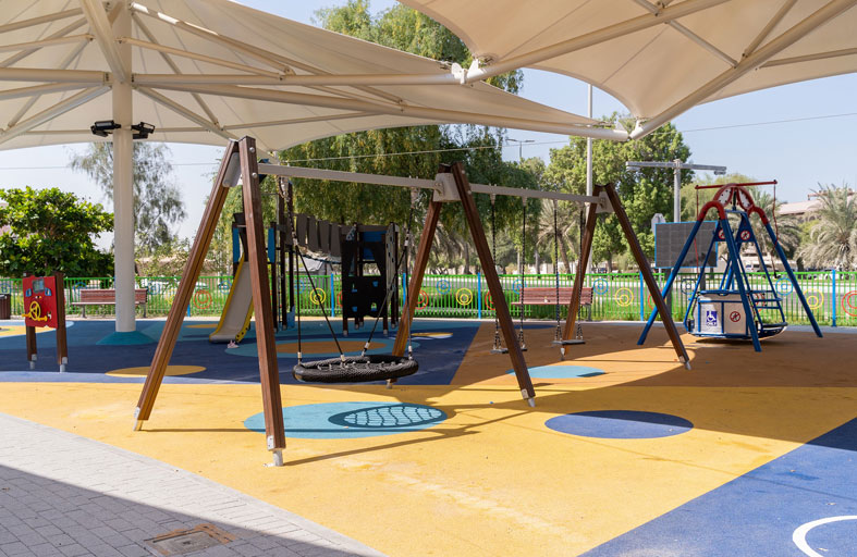 وشملت الأعمال إنشاء منطقتين مظللتين، إحداهما للألعاب والأخرى لممارسة التمارين الرياضية لخدمة أصحاب الهمم وأقرانهم، حيث تضمنت أعمال منطقة الألعاب تركيب معدات ألعاب جديدة تخدم مختلف الفئات العمرية، بما فيهم أصحاب الهمم بمختلف شرائحهم، كما تم اختيار معدات الألعاب وفقاً لأعلى المعايير والمواصفات العالمية، بالإضافة إلى أنها مصنعة من مواد مستدامة وصديقة للبيئة كالأخشاب الطبيعية.