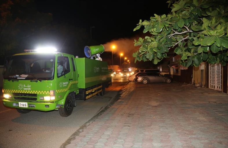 وشمل برنامج التعقيم الذي استمر على مدى عدة أيام في الفترة من 26 مارس-حتى اشعار اخر، والذي نفذته البلدية بالتعاون مع شركائها في كافة الشوارع والطرقات والمرافق العامة، ومداخل الحدائق والدوائر الحكومية والأحياء السكنية في المدينة الفاضلة.