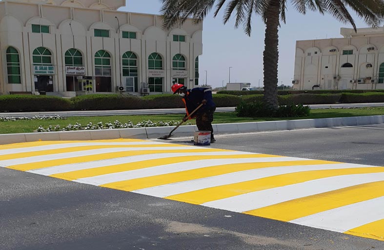 وتم البدء حاليا في تنفيذ جزء من الطريق التي تسلكه الشاحنات قبل دخولها المنطقة الحدودية الغويفات، وسيتم كذلك معالجة التشققات الاسفلتية بطريق الشيخ خليفة بن زايد الدولي للمحافظة على طبقات الرصف من الضرر.