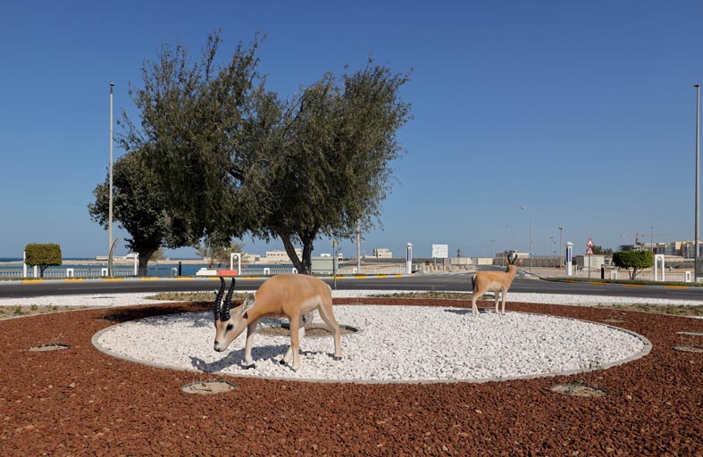 أنجزت بلدية منطقة الظفرة أعمال تأهيل الدوار المقابل لكورنيش مدينة المرفأ حيث تم استخدام الأحجار التجميلية ومجسمات الغزلان ومغطيات زهور ونباتات البيئة المحلية.