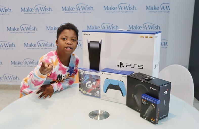 استطاعت مؤسسة تحقيق أمنية، وبفضل الدعم الكبير من مُحبي الخير في مجتمع الإمارات، من تمكين الطفل خليفة الذي يبلغ من العمر 9 سنوات ممارسة هوايته في سباق السيارات التي يعشقها عبر الحصول على جهاز بلاي ستيشن 5. وأفاد مسؤول المؤسسة بالقول: على الرغم من تشخيصه بمرض مُزمن في القلب، غير أننا، وعند لقائنا به تعرّفنا على أمنيته في الحصول على جهاز بلاي ستيشن، مع عدد من الأقراص المُدمّجة التي تحتوي على برامج سباقات السيارات، سماعات للأذن، إضافة إلى ذراع إضافي ليتمكن من اللعب مع أخيه.