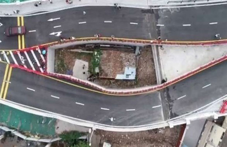 اجتذب منزل، يبلغ عرضه 40 متراً بجنوب الصين، اهتمام مستخدمي مواقع التواصل الاجتماعي، كما أصبح مقصداً سياحياً، وذلك عقب بناء طريق سريع مؤلف من حارتين حوله.