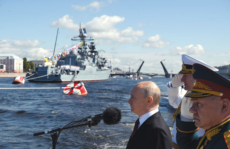 تابع الرئيس الروسي فلاديمير بوتين، عرضاً للسفن الحربية والغواصات النووية في مسقط رأسه بمدينة سان بطرسبرغ أمس الأحد، وأعلن أن البحرية ستستقبل 30 سفينة جديدة هذا العام.