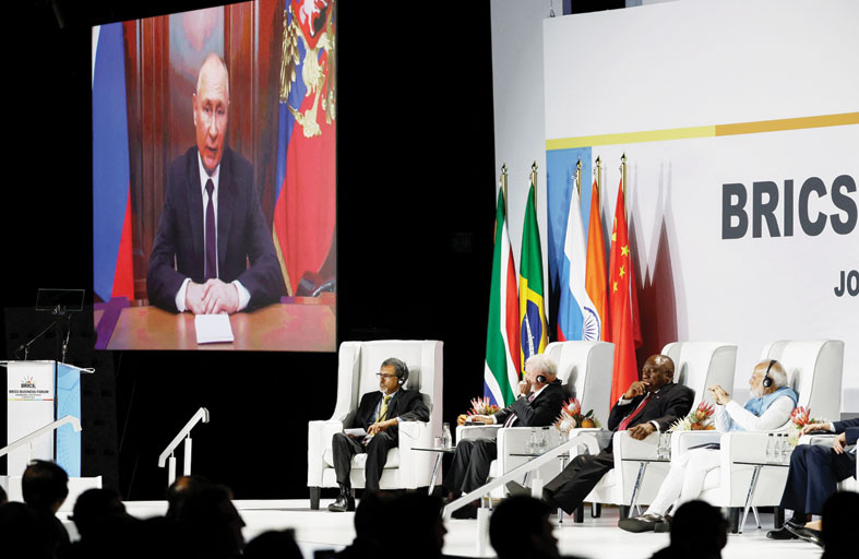 اجتمع زعماء دول بريكس في جوهانسبرج أمس لحضور قمة يبحثون فيها توسع المجموعة مع سعي بعض الأعضاء لتحويلها إلى قوة موازية للغرب.