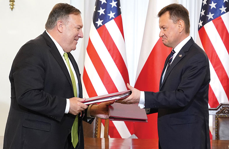 ووقع بومبيو، في وارسو أمس السبت، مع وزير الدفاع البولندي ماريوس باشاكزاك اتفاقية تعاون دفاعي معزز تحدد الإطار القانوني لوجود إضافي للقوات.