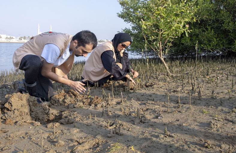 وتتواءم مبادرات الهيئة في هذا الصدد مع استراتيجية الإمارات في مواصلة زراعة أشجار القرم والتوسع في مد غطاء غابات هذه الأشجار لتحقيق هدف الدولة للوصول إلى 100 مليون شجرة قرم في الدولة بحلول عام 2030، وهو ما يسهم في الجهود الرامية إلى تعزيز النظم البيئية المحلية لأشجار القرم التي تمثل أحواضًا طبيعية لتخزين وعزل الكربون الأزرق، وعاملًا مهمًا في امتصاص الغازات الدفيئة، وحماية سواحل دولة الإمارات من ارتفاع مستويات سطح البحر والعواصف الشديد، وأيضًا المضي قُدمًا في تبني وتنفيذ الحلول البيئية المستدامة والتي تستند إلى الطبيعة لمواجهة تحديات التغير المناخي، وكذلك توفير الموائل الطبيعية للتنوع البيولوجي في البيئة البحرية.