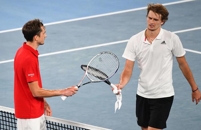 وفي قمة على ملعب رود ليفر أرينا بين لاعبين من العشرة الاوائل عالميا، تفوّق دانييل ميدفيديف الرابع على الكسندر زفيريف السابع 3-6 و6-3 و7-5. قال ميدفيديف في مؤتمر صحافي "خضنا مباراتين صعبتين وخسرنا المجموعة الاولى". تابع "لم تكن الامور سهلة، لأننا حصلنا على يومي راحة قبل المباراة".