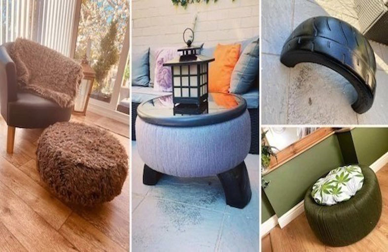 صنعت إحدى النساء المهتمات بصناعة الأثاث، العديد من قطع الأثاث بما في ذلك طاولة ومسنداً للقدمين، بنفسها باستخدام عجلات السيارات القديمة وبعض الأقمشة. وفي تعليق لها على مجموعة اصنع بنفسك بسعر معقول على فيسبوك، قالت المرأة التي لم تذكر المصادر اسمها: يمكن لأي شخص يريد أثاثاً جديداً في فناء منزله، الحصول على بعض إطارات السيارات القديمة، وصنع ما يريد. لإنشاء طاولة الفناء، أخذت الإطار ولفته بسلسلة قبل طلائها باللون الرمادي لتتناسب مع بقية أثاثها. وقطعت إطاراً آخر إلى نصفين وثبتته أسفل الطاولة باستخدام مسدس الغراء. ومن ثم وضعت لوحاً من الزجاج عليه. وقد استخدمت المرأة إطاراً آخر كمسند للقدمين، وأضافت إليه ألواح الخشب لتغطية الفجوة من الأعلى والأسفل، قبل أن تغطيه بالقماش. يذكر أن منشور المرأة التي صنعت العديد من قطع الأثاث الأخرى، على فيس بوك حظي برواج كبير على الإنترنت، وتمت مشاركة الصور آلاف المرات على مواقع التواصل الاجتماعي، بحسب ما ورد في موقع ميترو الإلكتروني.