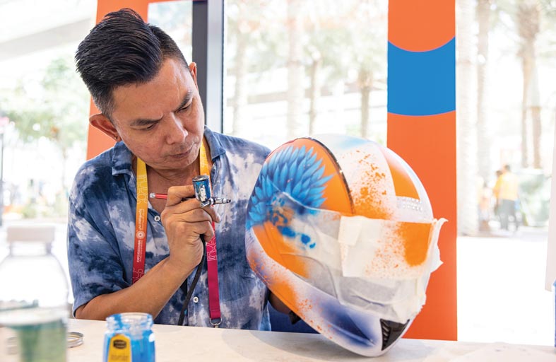 أطلقت هيئة الثقافة والفنون في دبي، بالتعاون مع "طلبات"، مبادرة #تذوق_الفن في إكسبو 2020 دبي، وهي فكرة إبداعية تقوم على دعوة ستة فنانين في الإمارات لإضفاء لمساتهم ورسوماتهم الفريدة على خوذات سائقي توصيل "طلبات"، بحيث يستضاف فنان واحد في "مطبخ طلبات" كل شهر وعلى مدار الحدث الدولي. وجاء اختيار الخوذات تقديرا للدور الأساسي الذي يؤديه سائقو توصيل الطلبات في الإمارات وفي أنحاء العالم. وتستضيف المبادرة في الشهر الأخير من الحدث الدولي غاري يونغ، وهو فنان من نيوزيلندا صيني الأصل، اشتهر بعدة أعمال فنية، منها البورتريهات والرسومات الواقعية والتجريدية، وشارك في تسجيل رقمين قياسيين في موسوعة غينيس للأرقام القياسية، عن أطول لوحة غرافيتي في دبي عام 2014-2015، وأكبر لوحة فنية تضيء في الظلام في رأس الخيمة عام 2016-2017. وفي ركن خاص داخل "مطبخ طلبات"، يجلس يونغ مع فرشاته وألوانه، أمام زوار الحدث الدولي، لا سيما رواد "طلبات" منهم، ليلون بفرشاته خوذة باللون البرتقالي المميز لـ"طلبات"، ويرسم عليها صورة فنية رائعة باللون الأزرق، فيما يتابعه الزوار بسعادة أو يطلبون التقاط الصور معه بوصفه فنانا شهيرا. عن هذه التجربة الاستثنائية، تحدث الفنان غاري يونغ قائلا: "يعرفني الناس أيضا باسم ’إنغورس ون‘، وأقيم في دبي منذ عشر سنوات. واليوم، أنا بصدد تجربة جديدة تمثل نوعا آخر من التقدير للسائقين الذين يقومون بتوصيل طعامنا، وهي واحدة من أصعب الوظائف باعتقادي. لقد اخترت رمزا مناسبا لهؤلاء السائقين، حيث رسمت جناحَي صقر على جانبَي الخوذة، ووضعت بعض الرموز في الرسومات لتدل على خفة الحركة، والارتقاء، والتركيز، والنشاط الذهني، وهي العناصر التي اكتسبها السائقون من خلال العمل على توصيل الطعام".