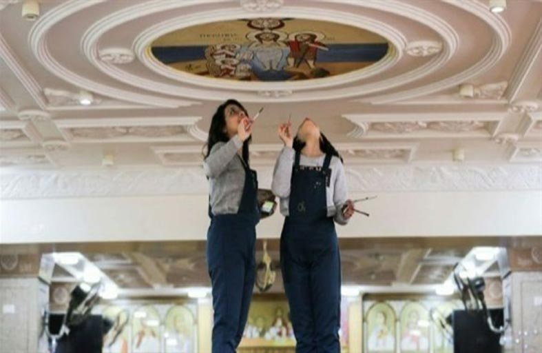 تزينان الكنائس بجداريات مستوحاة من الفن القبطي