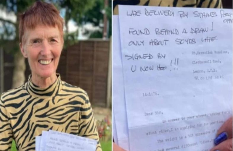 وكانت تيزي هودسون وهي ممثلة حركات بهلوانية سابقة، تقدمت لوظيفة قائدة استعراضية للدراجات النارية، لكنها لم تتلق رداً على رسالتها. وبحسب ما نقلته  "الغارديان" عن هودسون قولها "تساءلتُ دائماً لماذا لم أتلقَّ أي ردّ بشأن الوظيفة؟، والآن أعرف السبب، أما كيف وجدوني، رغم أنني انتقلتُ من منزل إلى آخر نحو 50 مرّة، ومن بلد إلى آخر 4 أو 5 مرّات، فذلك يبقى لغزاً". ويشار إلى أنه تم إرسال الرسالة إلى هودسون في يناير-كانون الأول 1976، حيث كانت محاصرة خلف درج في مكتب بريد طوال هذه السنوات ولكنها وجدت الآن طريقها إليها.