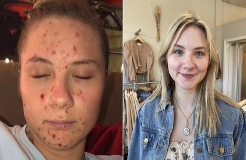 تشوه وجهها بسبب حالة تجعلها تزيل بثور وجهها بأظافرها