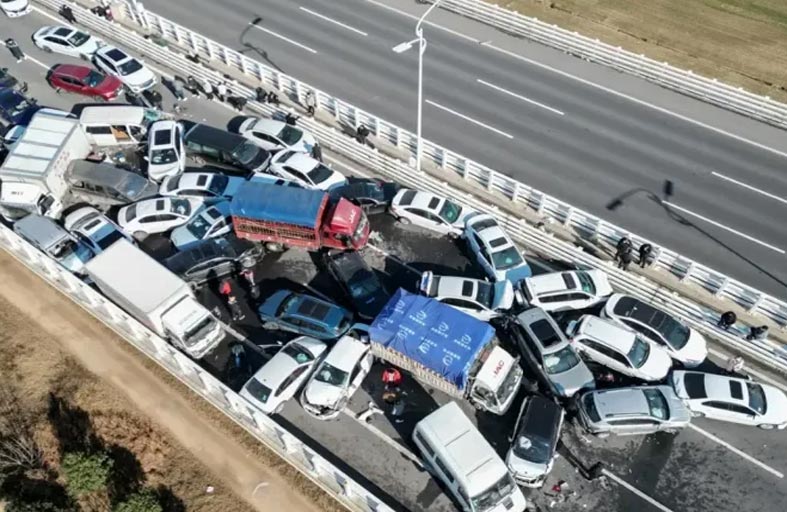 تصادم 100 سيارة في الصين!