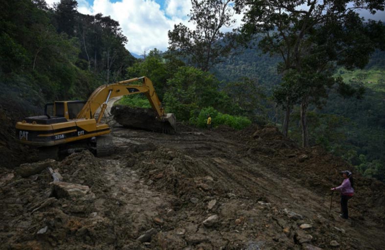 على بُعد أمتار قليلة، كان الطريق مسدودًا بالطين والصّخور بينما كانت جرّافة تعمل على إزالتها.