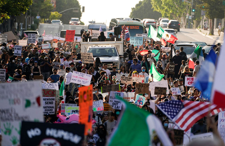 وقالت قس في ضاحية داوني في لوس أنجليس إن خمسة مسلّحين يقودون سيارات من ولايات أخرى ألقوا القبض على رجل يتحدث الإسبانية في موقف سيارات الكنيسة. وعندما واجهتهم وطلبت أرقام شاراتهم وأسماءهم، رفضوا تقديمها. وقالت لشبكة “كاي تي إل أيه” “وجّهوا بنادقهم نحوي وقالوا “عليك التراجع”.
