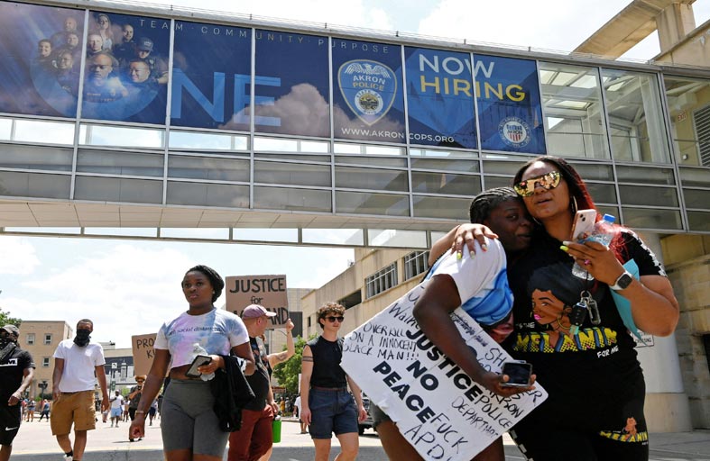تظاهر مئات الأشخاص في مدينة أكرون بولاية أوهايو في شمال الولايات المتحدة بعد بثّ مقطع مصور يُظهر عناصر شرطة يطلقون النار على رجل أسود أصيب بحسب محاميه بستّين رصاصة.