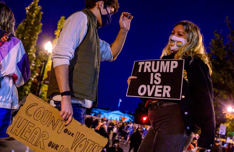 وقال جون فريزر (47 عاماً) الذي يعمل مطوّر برمجيّات “لستُ واثقاً من أنّ بايدن قد فاز. يجب انتظار أن يتمّ احتساب كلّ الأصوات. أخشى من أنّ الديموقراطيّة معلّقة بخيط رفيع».