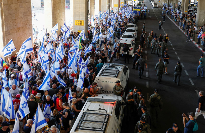 شارك آلاف الإسرائيليين في تظاهرة جديدة ضدّ مشروع حكومي لتعديل النظام القضائي في الدولة العبرية، وذلك بعد أيام من تخلّي رئيس الوزراء بنيامين نتانياهو عن بند رئيسي في مشروعه الإصلاحي المثير للجدل. وككلّ أسبوع منذ أشهر عديدة، احتشد المتظاهرون في تلّ أبيب رافعين لافتات كتب عليها “فلننقذ الديموقراطية».