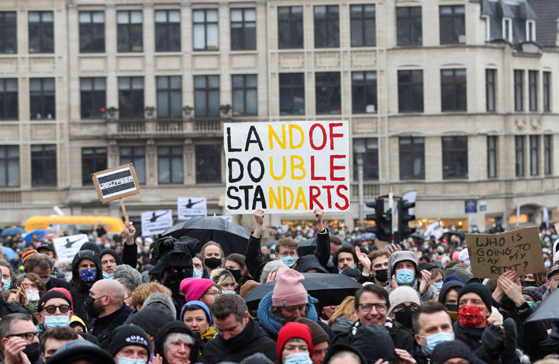 تظاهرة حاشدة في بروكسل رفضا لإغلاقات كوفيد