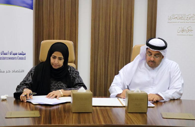 وقع الاتفاقية كل من السيد أحمد خلفان الشامسي المدير العام لدائرة الأراضي والتنظيم العقاري بالإنابة وسعادة الدكتورة آمنة خليفة آل علي رئيس مجلس سيدات أعمال عجمان.