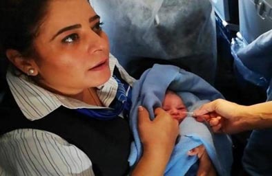 وبعد توجهه إلى المنطقة المشار إليها، فوجئ فتحي بوجود سيدة حامل تعاني من ألم شديد، وبجانبها تقف الجدة وعدد من المضيفات في محاولة لإسعافها.
