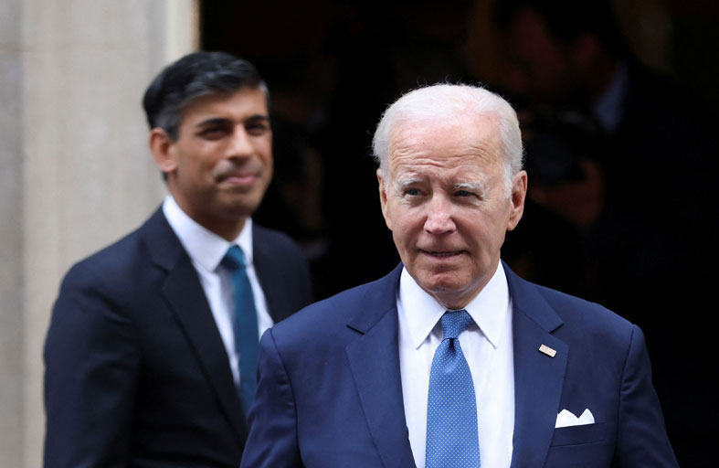 ويدعو الكاتب ريشي سوناك كرئيس للوزراء أن يقف في مواجهة بايدن بشأن مستقبل حلف الناتو، ويدفع باتجاه صفقة تجارية بين لندن وواشنطن، ويطلب منبايدن أن يهتم بشؤونه الخاصة بشأن بريكست وإيرلندا الشمالية. ولكنه يستدرك: “علينا ألا نتوقع الكثير بعدما فشل سوناك في القيام بذلك في زيارته الأخيرة إلى البيت الأبيض، وفيما يعتبر أنصار بايدن أن الالتفاف على رئيس الوزراء الحالي أسهل بكثير مقارنة بسلفيه بوريس جونسون وليز تراس».