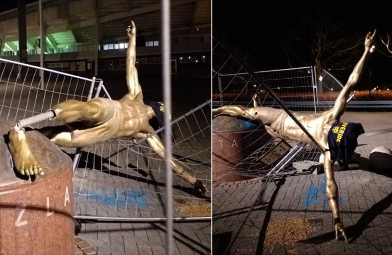 تعرض تمثال زلاتان إبراهيموفيتش في مسقط رأسه للتخريب مجددا وأزيل بشكل شبه كامل من قاعدته خارج ملعب مالمو في السويد. وحضر مهاجم ميلان مراسم إزاحة الستار عن التمثال في أكتوبر تشرين الأول العام الماضي لكن الهداف التاريخي لمنتخب السويد لكرة القدم أغضب جماهير مالمو بعد أن اشترى حصة في نادي هامربي الغريم في ستوكهولم وقال إنه سيحوله إلى أكبر ناد في اسكندنافيا. وبدأ إبراهيموفيتش مشواره في مالمو قبل أن يخوض مسيرة زاخرة بالألقاب في هولندا وايطاليا وإسبانيا وانجلترا وفرنسا وأمريكا.