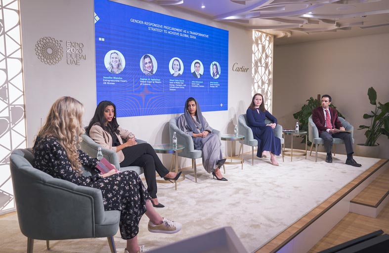 جاء الإعلان عن ذلك خلال جلسة نقاشية استضافها “جناح المرأة” في معرض “إكسبو 2020 دبي” ضمن فعاليات “أسبوع الأهداف العالمية” وحملت عنوان “العمليات الشرائية المراعية للنوع الاجتماعي كاستراتيجية تحويلية لتحقيق أهداف التنمية المستدامة”، حيث سلطت الجلسة الضوء على أهمية هذه العمليات ودورها الاستراتيجي في تمكين رائدات الأعمال من بناء عالم أفضل.