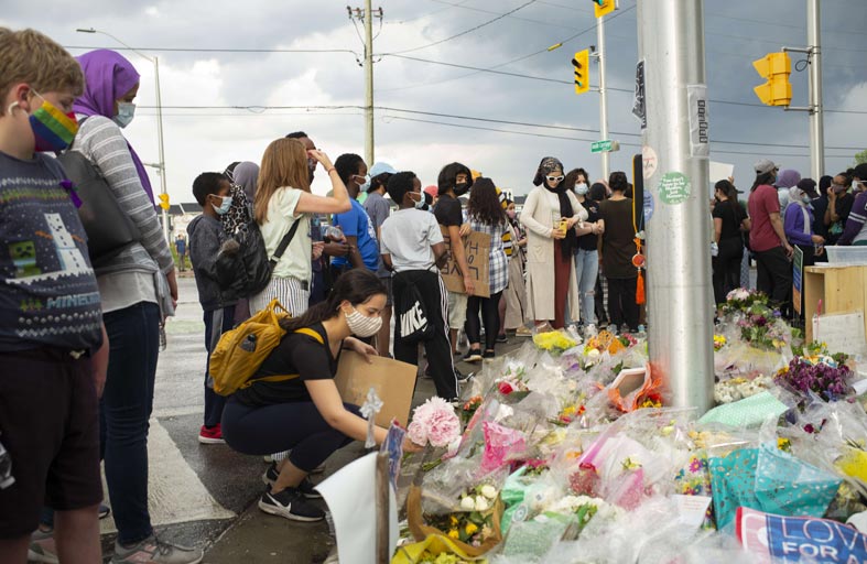 وسار الناس في منطقة لندن بأونتاريو نحو سبعة كيلومترات من المكان الذي لقيت فيه الأسرة حتفها إلى مسجد قريب من المكان الذي اعتقلت فيه الشرطة فيلتمان.