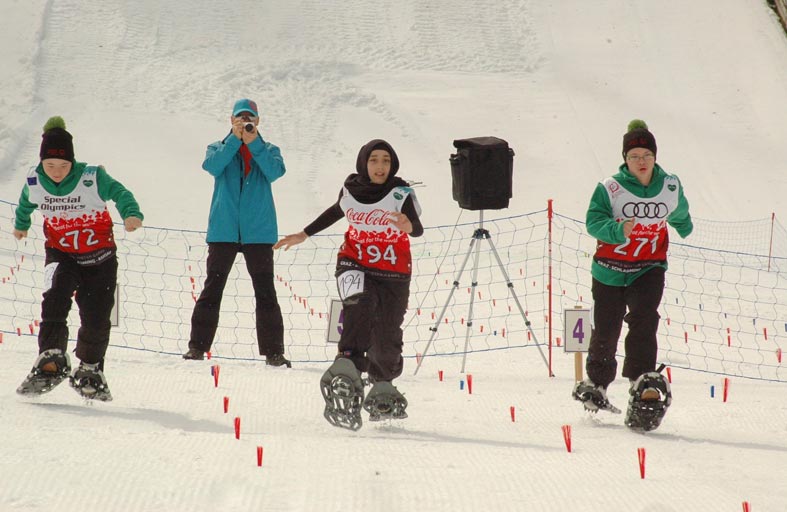 لجميع اللاعبين على مختلف مستويات قدراتهم، في المسابقات الفردية لرياضةالجري على الجليد تتراوح بين سباقات لمسافة 100 متر إلى مسافة 5 كيلومترات، و بالإضافة إلى هذه المسابقات التقليدية، يوفر الأولمبياد الخاص للاعبين ذوي القدرات المنخفضة مسابقات تمكنهم من المشاركة منافسات المهارات الأساسية لرياضة الجري على الجليد. ويعد اكتساب هذه المهارات وتطويرها من أهم اشتراطات الترقي للمشاركة في المسابقات الأطول مسافة،وقد أجريت مسابقات الأولمبياد الخاص الجري على الجليد للمرة الأولى ضمن فعاليات ألعاب الأولمبياد الخاص العالمية الشتوية 1997، التي أقيمت في تورنتو بكندا كرياضة استعراضية ، وشهدت الالعاب العالمية الشتوية 2001،التي أقيمت في ألاسكا بالولايات المتحدة الأمريكية، استضافت 140 لاعبا من سبعة دول ، كما أجريت مسابقات رياضة الجري على الجليد ضمن فعاليات الألعاب العالمية الشتوية 2005، والتي أقيمت في ناغانو اليابان.ومسابقات الجري على الجليد 100 متر، 200 متر، 400 متر، 800 متر، 1600 متر، 5 كيلومتر، 10 كيلومتر، تتابع الأولمبياد الخاص 4 × 100 متر، تتابع الأولمبياد الخاص 4 × 400 متر، تتابع الرياضات الموحدة 4 × 100 متر،. تتابع الرياضات الموحدة 4 × 400 متر ،وتوفر المسابقات التالية تنافسا مفيدا للاعبين ذوي مستويات القدرة المنخفضة:سباق 25 متر،سباق 50 متر.