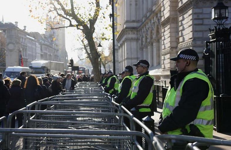 وحشدت الشرطة ألف عنصر للحفاظ على النظام في العاصمة البريطانية. وذكرت الشرطة أن التظاهرة المضادة المناهضة للعنصرية نظّمتها مجموعة «الوقوف في وجه العنصرية» ودعمتها نقابات عدة.