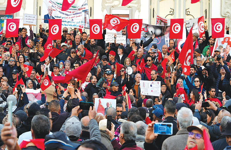 تجمّع المئات من أنصار الرئيس قيس سعيد في تونس، أمس الأربعاء، لتجديد الدعم له ورفض ما وصفوه بالتدخل الأجنبي في شؤون بلادهم، بمناسبة الذكرى 14 لاندلاع الثورة.