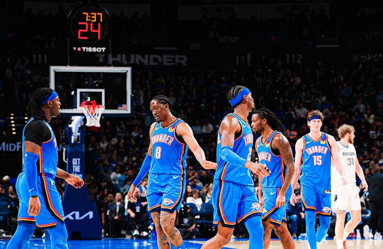 أعاد النجم الكندي شاي غلجيوس-ألكسندر فريقه أوكلاهوما سيتي ثاندر، حامل اللقب، إلى سكة الانتصارات، بعد فوزه على ممفيس غريزليز 119-103، في دوري كرة السلة الأميركي للمحترفين "أن بي ايه".