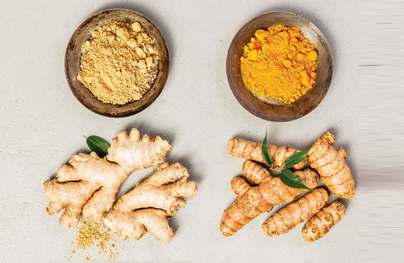 وأضافت "إلى جانب خصائصه المضادة للالتهابات، أظهرت بعض الدراسات أن الزنجبيل يمكن أن يقلل أيضا من أعراض هشاشة العظام، على الرغم من أن دراسات أخرى لم تجد مثل هذه الفائدة. ويُعرف الكركمين بأنه المادة الكيميائية النشطة في جذر الكركم؛ فهو يمنع السيتوكينات الالتهابية والإنزيمات في مسارين للالتهاب. وأظهرت العديد من التجارب البشرية فائدة مضادة للالتهابات، والتي يمكن أن تترجم إلى تقليل آلام المفاصل وتورمها".