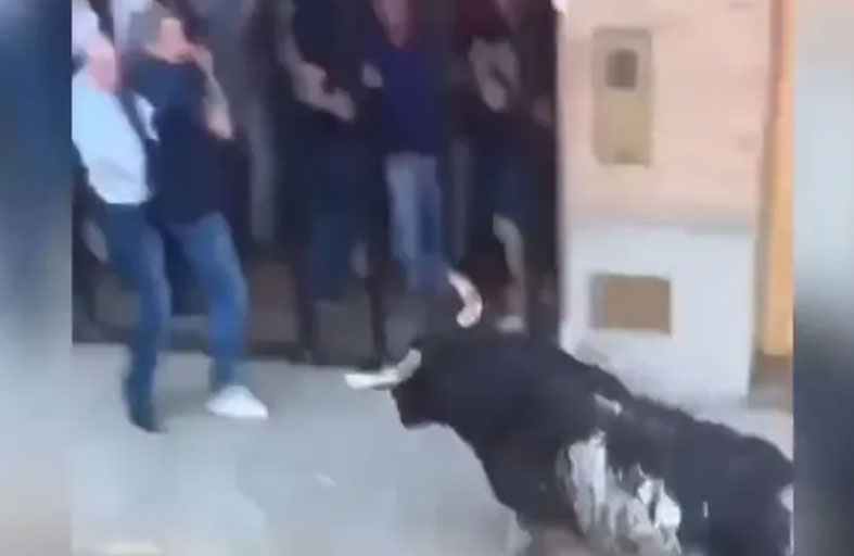 ثور هائج يوجه نطحة قاتلة لرجل بمهرجان