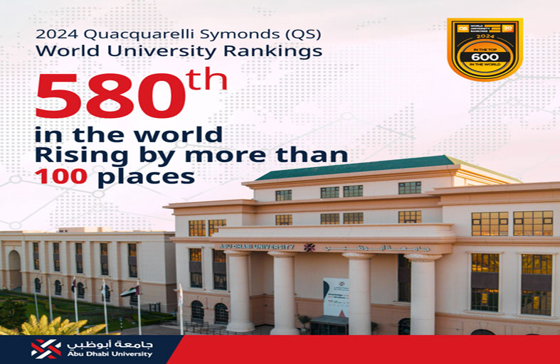 تواصل جامعة أبوظبي تحقيق الإنجاز تلو الآخر وترسيخ مكانتها كمؤسسة أكاديمية رائدة، حيث حلت بالمرتبة 580 على مستوى العالم والسابعة على مستوى الدولة وفق تصنيف مؤسسة "كيو اس" (كواكواريلي سيموندز) المتخصصة بتصنيف أفضل الجامعات حول العالم لعام 2024، متقدمةً أكثر من 100 مركز بالمقارنة مع العام الماضي، ومحققةً أعلى مرتبة منذ العام 2014.